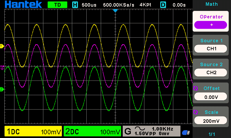 1GSa/s | Oscilloscope+Waveform Generator , 40K Record Length; 7 inch 64K color LCD display (WVGA 800x480), Integrated USB Host/Device |